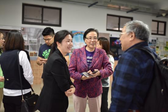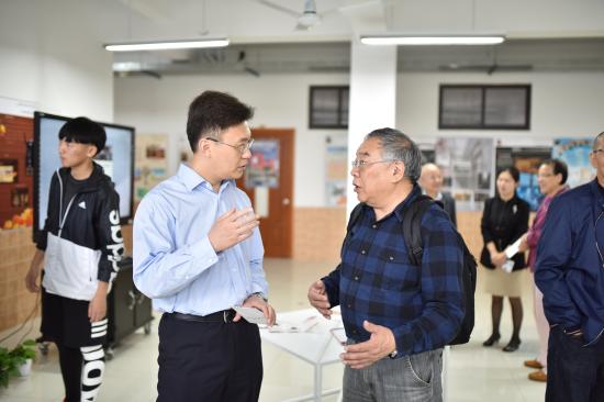 (嘉定区科委陆凤副主任与校党委书记韩晓玉对展览内容十分感兴趣)