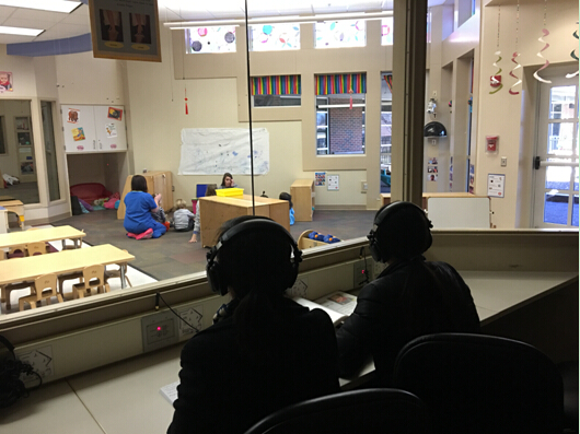 (我校教师在儿童发展研究中心的观察室进行儿童行为观察)