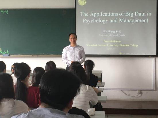 6月17日美国中佛罗里达大学心理学教授Wei Wang博士访问我校。王教授为健康学院应用心理学专业的学生进行了一场别开生面的讲座,从心理学专业的发展前景出发,向学生们传达了“大数据时代”心理学研究思路以及最新的研究方法。在座学生及老师纷纷表示受益匪浅。
