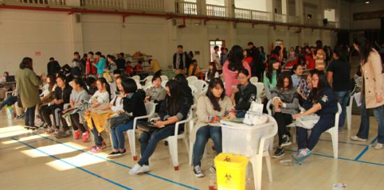 2015年11月2-3日,我校联合上海市教育委员会,上海市卫生局,上海市红十字会,共青团上海市委员会,上海市血液中心,在跃华楼体育馆内进行以爱心彰显青春之美,用奉献引领时尚之路义务献血活动,掀起了一场无偿献血的爱心热潮。此次爱心献血活动吸引了广大师生的踊跃参与,共计有820多人次参加献血,自愿为社会奉献一份爱心。