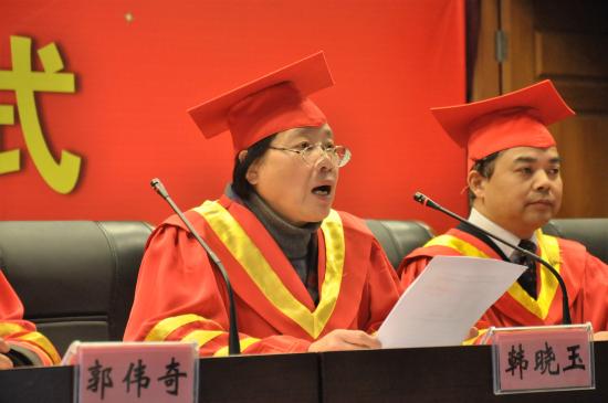 在神圣庄严的气氛中,毕业生们身着学士袍,登上受礼台,从校长叶才福手中一一接过学士学位证书,学位授予仪式圆满结束。