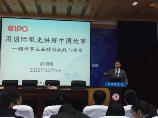 2015年12月5日,CATTI杯全国第二十七届“韩素音青年翻译奖”竞赛颁奖典礼在宁波大学举行。中国外文局局长、中国翻译研究院院长、中国翻译协会会长周明伟,中国外文局国际合作部主任、中国译协常务副秘书长姜永刚,《中国翻译》杂志副主编、中国翻译协会翻译理论与翻译教学委员会副主任兼秘书长杨平等出席了颁奖典礼。
