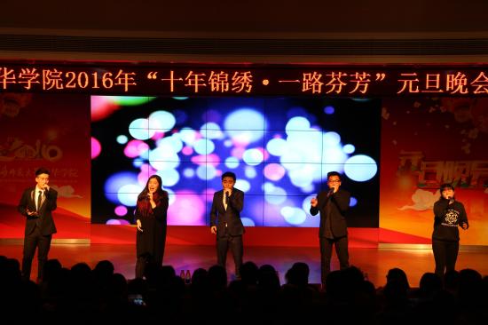 2015年12月30日17:30,由我校学保处、团委主办的2016年“十年锦绣,一路芬芳”元旦晚会在晖华楼小剧场隆重举行,党委书记韩晓玉、高级顾问陈颖书、党委副书记曹云林、校监史文、校监周烨刚、管理学院院长程葆青、健康学院院长祝亚平、进修学院院长吴登友、党委宣传部长齐砚奎、实习实训处处长符跃鸣、资产处设备处处长朱清、学保处常务副处刘天翔等出席本次晚会。