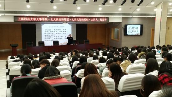 2016年3月16日晚18:00,晖华楼报告厅灯火通明,座无虚席,我校“北大精华讲座讲师团”首场讲座隆重开讲!健康学院院长、国学院常务副院长祝亚平老师为来自语言文化学院和教育学院的350位同学主讲“礼乐文化的回归”,现场听讲秩序井然,反响热烈。本次讲座的顺利举行,也标志着学校“北大精华讲座讲师团”工作正式启动。