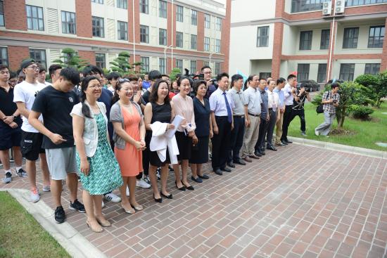 邹荣祥董事长、石伟平执行董事长、韩晓玉书记、叶才福校长、郭伟奇总校监、陆建非顾问六位领导为大礼堂落成剪彩。