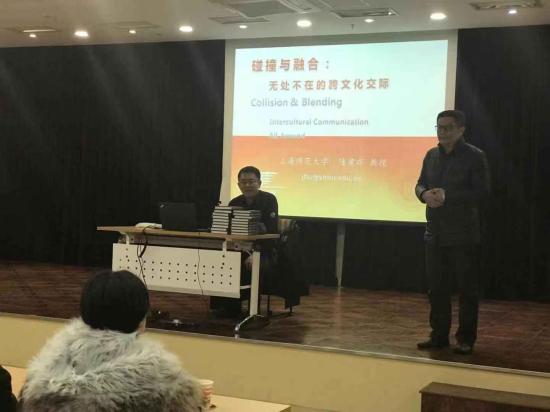 陆教授简明扼要为老师们阐述了五道论题:什么是跨语言交流、什么是跨文化交际、概念及学科背景、跨文化交际的基本原则、跨文化交际的六把尺子;陆教授由浅入深,试图让大家了解 “跨文化交际”,让在场的老师们深刻地体会到在全球化发展的社会中,顺畅、愉悦、有效的交流是多么的重要。