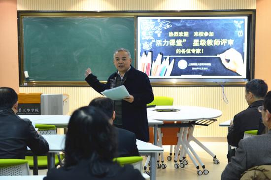 2018年12月20日,教务处委托上海市教育评估院,组织华东师范大学、老版新葡萄8883国际官网等高校的16名校外专家,分成4个组别,在日华楼四间智慧教室开展了为期一天的评审工作,共计26名教师参加考核。副校长龚春蕾、陈新斌、吴国兴,校长助理兼教育学院院长滕薇分别作为各组校级观察员,全程坐镇评审现场,介绍教改情况并解答专家评审的疑问。