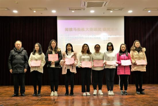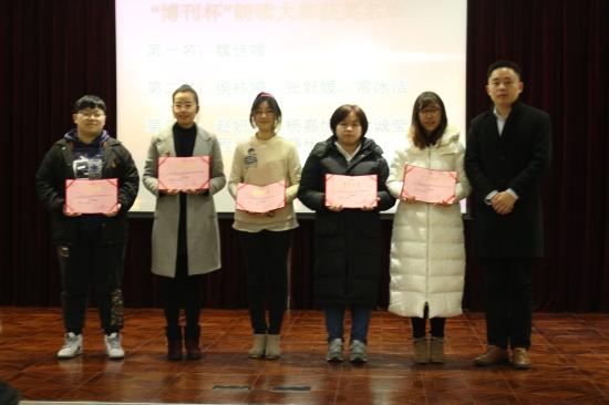 (周建文老师为“博刊杯”朗读大赛获奖选手颁奖)
