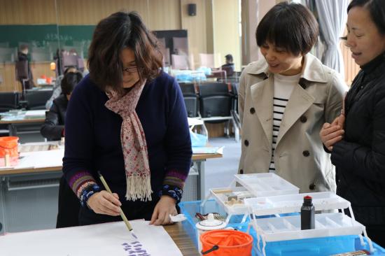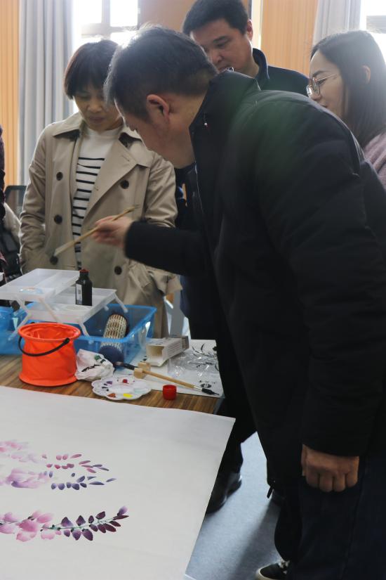 参观完校园,区人大代表们来到同华楼二楼,开展走进艺术课堂——体验国画艺术活动。由教育学院曹勇副教授进行授课演示,各位人大代表认真观摩,仔细聆听,纷纷表示要将这样有意义的活动长期的、经常的开展下去。