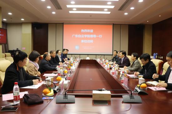 2019年3月14日上午,广州白云学院校长黄大乾等六位领导来校进行交流访问,并在同华楼会议中心举行访问交流会。参加本次活动的有学校董事长邹荣祥,校长叶才福,副校长龚春蕾等。访问交流会由校长叶才福主持。