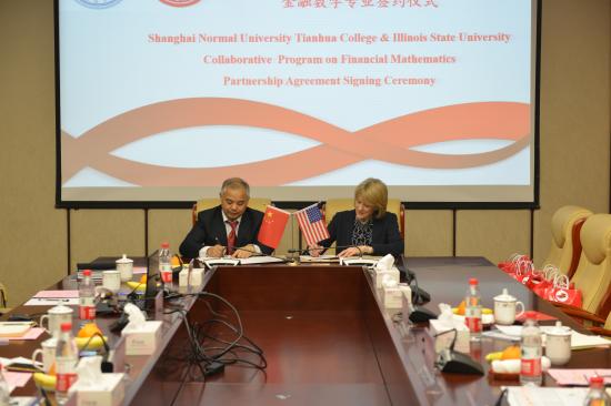 2019年4月18日,美国伊利诺伊州立大学分管教学的副校长兼教务长Dr. Murphy,副教务长Dr. Yazedjian及国际生录取中心执行主任Yimin Wang来访我校,并签订两校金融数学专业合作协议。校长叶才福、副校长龚春蕾、教育科技孵化中心兼幼教支持服务中心主任胡国志、国际交流处处长胡珍、科研处处长兼管理学院副院长翁跃明、艺术学院副院长朱花、语言文化学院副院长孙超热情接待。会议由副校长龚春蕾主持。