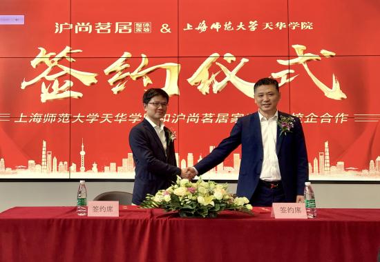 2019年5月10日下午13:30,老版新葡萄8883国际官网艺术设计学院与沪尚茗居装饰集团校企合作签约仪式在沪尚茗居宝山店隆重举行。沪尚茗居装饰集团董事长徐泽宇、我校艺术设计学院副院长徐子卿、院长助理李娟、环境专业主任韩丽莹等教师代表出席了此次签约仪式。
