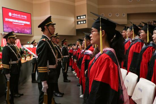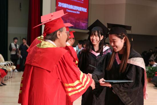 本次毕业典礼暨学位授予仪式的主会场在晖华楼大礼堂,同时还设有两个分会场在晖华楼报告厅和小剧场,进行实况转播。毕业典礼开始前,全场毕业生起立,用热烈而隆重的掌声欢迎一直以来关心和关爱我校学生成长的指导教授和全体校务委员会领导入场。校务委员会的领导也改变了以往的入场仪式,从在场的毕业生就坐的座位席中走向主席台,这也代表着领导老师融入学生中,与全体毕业生共同庆祝这个值得纪念的日子。
