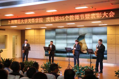 随着我校国际化教育的快速发展,我校中外合作办学项目和专业已达13个,涵盖3个国家8所院校,每年有近60位客座教授来我校授课,他们被称之为“飞行教授”。此外,今年,我校还特别聘请了13位常驻外教,数量上创历史新高。在精彩的文艺表演过后,常驻外教上台亮相,依次作自我介绍,并用中文祝在座所有老师节日快乐。