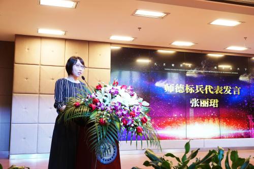 随着师德标兵获得者,语言文化学院张丽珺老师以及新教师代表商学院陈志伟老师的发言结束,大会也完美落幕。衷心祝愿所有教职员工家庭像花儿一样幸福,心情像花儿一样美丽。
