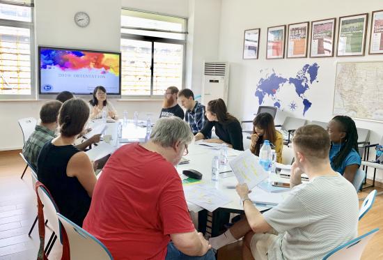 2019年9月4日-5日,国际交流处副处长张云、梁杰在国际交流处会议室分别为本学期11位常驻英语外教进行入职培训。4日上午9点,国际交流处胡珍处长就我校整体情况及相关合作项目管理等进行了简要介绍;随后张云副处长、赵旋就我国外专证、居住证办理流程和相关法律法规以及我校外教后勤服务等对外教进行了培训,下午对外教办公用品等进行了分配; 5日上午9点,梁杰主要就我校教学管理要求、教师行为规范、合作项目课程要求及学生情况等对外教进行了逐一说明,王颖超、潘杰分别就课表、教材、教学文档提交的时间节点、调停课流程、第二课堂活动等与外教进行了确认和沟通,会后带领所有外教参观校园和教室,做好开学前的一切准备工作,确保第一周教学顺利进行。