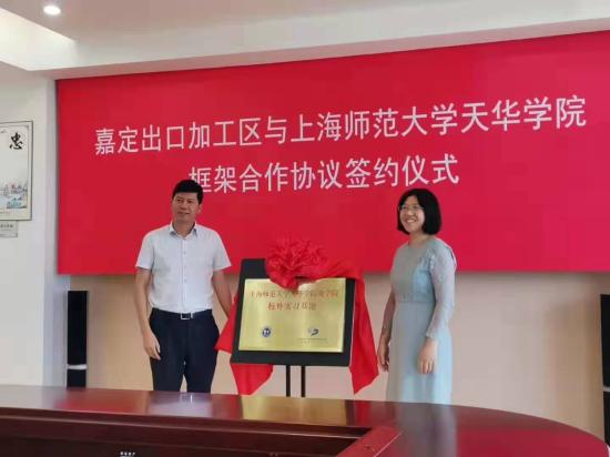经过前期的交流和筹划,2019年9月29日下午,我校与上海嘉定出口加工区举行了战略合作框架协议的签约仪式。上师大天华学院副校长龚春蕾、商学院院长程葆青、院长助理孟林丽及相关专业主任,出口加工区管委会副主任、公司董事长、总经理潘晓红,副总经理徐瑞祥,参加了校企实践教学基地合作协议签字及揭牌仪式。此外,出口加工区还邀请了十余家园区企业代表见证此次签约。签约仪式由嘉定出口加工区副总经理霍亚涛主持。