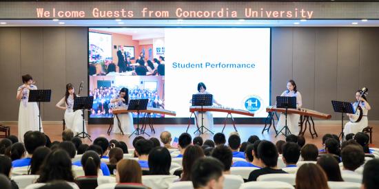2019级康复治疗学(中外合作办学)专业美方见面会在副校长龚春蕾的致辞中开启,龚校长代表学校感谢威斯康星协和大学在项目发展、教师选派、留美学生支持等方面所提供全方位支持及鼓励,学生及家长反馈评价颇高,并积极评价康复治疗学(中外合作办学)专业学生在语言学习等方面所取得的成绩,寄语新生今后在从事康复治疗学方面的工作时,将 “身、心、智方面”全方位地帮助病人。威斯康星分校校长Pat Ferry激励新生克服内心障碍,积极面临挑战,CUW致力于帮助大家适应异国生活,确保大家度过充实、快乐的留学生活。分管国际事务副校长David Birner讲话中提到,自己一直关注2019级新生的情况,对于学生的基本信息都很熟悉,期待将来学生可以亲临CUW校园,感受CUW学习及国际化氛围。远在大洋彼岸的35名2017级留学同学特别制作了美国学习、生活视频,与学弟学妹们分享CUW留学生活。为欢迎校长团一行来访,健康学院学生在专业老师赵婉茹带领下,为在场嘉宾带来具有中国传统文化特色的乐器表演。最后,学生们就学习、生活、饮食、住宿等方面用英语积极互动,CUW校方耐心地逐一回复。