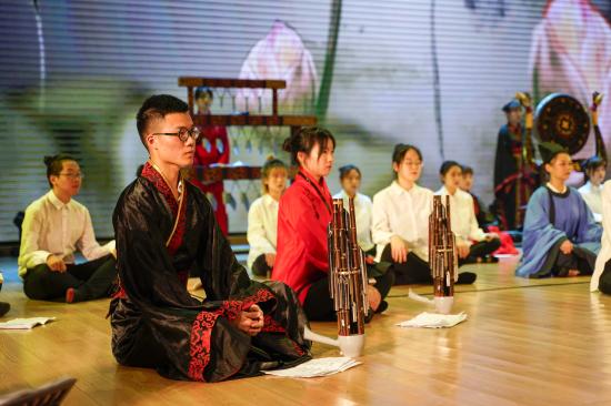 演出过程中,赵越老师身兼多职,一边作为演员带领京沪两地雅乐团共同奏唱,一边用生动活泼的话语向现场观众解读每首曲目的出典和艺术特色。通过演员们的精彩演绎和赵老师的细致讲解,同学们对中华雅乐增强了认知,也体认到赵老师所致力于的“人民雅乐”事业对传承中华优秀传统文化的重要意义。