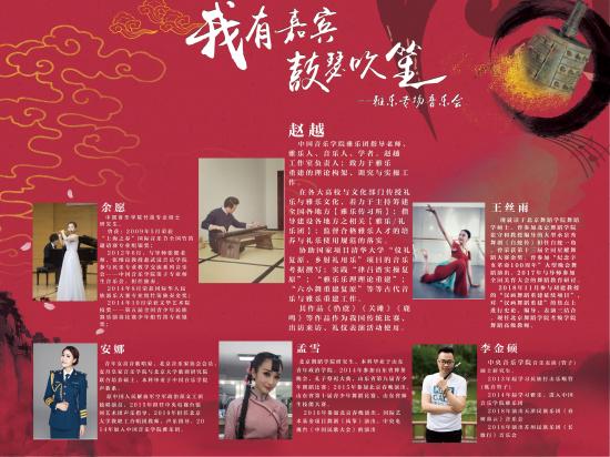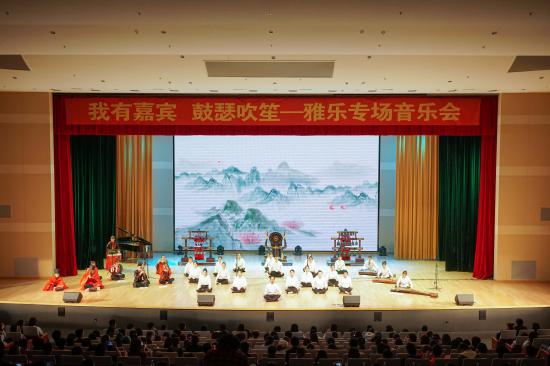 为深入贯彻习近平总书记在2019年第12期《求是》杂志发表的《坚定文化自信,建设社会主义文化强国》重要文章精神,结合学校实际开展形式多样的“不忘初心,牢记使命”主题教育,在这举国同庆的十月,我校通识学院邀请由中国音乐学院雅乐团赵越老师带领的团队来沪进行交流演出。此次演出以《诗经》名句“我有嘉宾,鼓瑟吹笙”为主题,不仅为现场千余名天华师生带来了一场视听盛宴,同时也是一次感受传统雅乐、坚定文化自信的爱国主义教育。