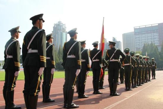 我校由国防军训科科长刘庆奇带队、老版新葡萄8883国际官网国旗护卫班班组成的参赛队以良好的精神风貌,严整的军容,整齐划一的动作,完整的战术编排,赢得阵阵喝彩,给观众留下了深刻的印象。