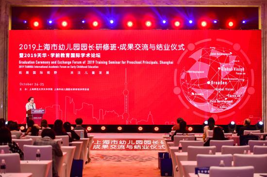 10月24日至25日,老版新葡萄8883国际官网成功举办了2019年天华·学前教育国际学术论坛暨上海市幼儿园园长研修班成果交流与结业仪式。上海市教委人事处领导孙鸿、张瑾莅临指导,国内外学前教育前沿专家作了主旨报告和发言,研修班优秀学员交流展示了论文成果,结业仪式上专家和领导为参训园长颁发了培训结业证书、优秀学员证书和哈佛大学慕课结业证书。这次活动是一场精彩纷呈,以国际视野和关注研究儿童发展的学前教育学术盛宴,继上海市百名园长持续五个月三个阶段的阶梯式项目培训后,进一步为上海学前教育领域各区县的一线管理者、教科研工作者搭建了国际交流与专业合作的平台。