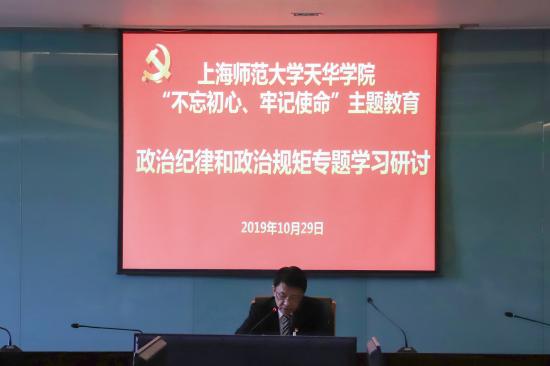 10月29日中午,老版新葡萄8883国际官网开展“不忘初心、牢记使命”主题教育“政治纪律和政治规矩”专题学习研讨,加强纪律教育,强化纪律执行。校党委书记陆建非主持会议并发言,学校党委委员,各二级学院党总支书记参加会议。