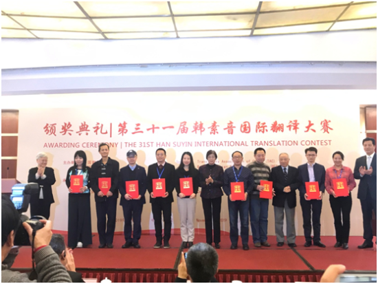 韩素音国际翻译大赛始于1989年,由英籍著名女作家韩素音女士提供赞助基金。本竞赛以其优秀的选材、严格的匿名评审制度、对评审结果的详细解读,受到全国乃至海外青年翻译爱好者的欢迎和认可,是我国翻译界的最高奖项,被称作翻译界的“奥斯卡”。本届大赛有英汉、法汉、俄汉、西汉、阿汉五种语对的互译,参赛人数一万多名,共收到有效参赛译文11900余份。参赛人数为历届之最,实现历史突破。经过四轮的严格评审和终审讨论,共评出获奖者346名。