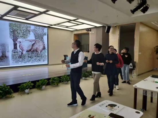 对于每一本绘本,滕薇老师都声情并茂地带领大家一起阅读,在《和甘伯伯去游河》的阅读过程中,滕薇老师还邀请大家开展立体阅读,即带领大家一起演出绘本里的游戏。正如滕薇老师讲到,听不如读,读不如演,演不如体验,阅读的最高境界是变成生活体验,绘本游戏瞬间将现场气氛推向一个高潮!仿佛已走进绘本世界,深切感受到了阅读的快乐!