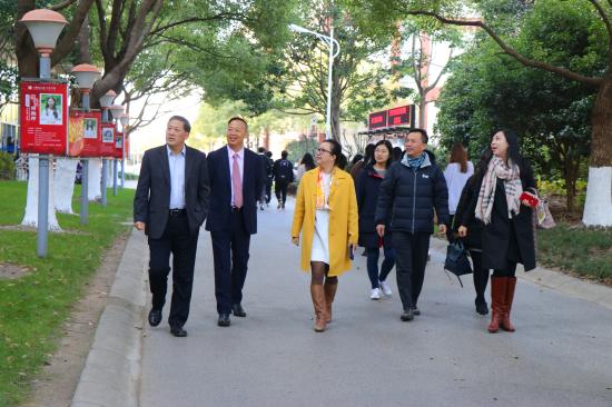 会前,廖榕就一行在副校长龚春蕾的陪同下参观了天华校园,详细考察了学校先进的设施设备以及浓厚的文化氛围。