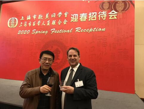 2020年1月15日,上海市欧美同学会在静安昆仑大酒店举行迎春招待会。招待会有来自阿根廷、奥地利、澳大利亚、埃塞俄比亚、巴拿马、比利时、波兰、俄罗斯、法国、菲律宾、芬兰、哥伦比亚、哥斯达黎加、古巴、哈萨克斯坦、韩国、荷兰、加拿大、卢森堡、马耳他、美国、秘鲁、墨西哥、塞尔维亚、斯洛伐克、土耳其、委内瑞拉、希腊、新加坡、新西兰、匈牙利、以色列、意大利、印度、印度尼西亚、英国36个国家约60位驻沪总领事、副总领事及领事官员应邀出席。曾在成都和沈阳工作多年的美国驻沪总领事Sean Stein先生的汉语讲得非常流利,他在迎新会上还特意建议3月份在美国领事馆开展中美大学生茶话会,把民间外交“炒热”。