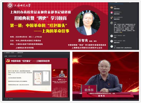 开班典礼后,上海市委讲师团“四史”学习教育专家宣讲团成员、老版新葡萄8883国际官网苏智良教授作“中国革命的‘红色源头’——上海的革命往事”精彩报告,他从“上海城市为中共建立提供了可能”“人物、空间与建党活动”“寻访并保护更多的上海红色史迹”三个方面,将上海作为中国共产党“初心之地”的历史和上海红色革命纪念地的寻迹故事娓娓道来,帮助大家更加深刻理解习近平总书记关于“从石库门到天安门,从兴业路到复兴路,我们党近百年来所付出的一切努力、进行的一切斗争、作出的一切牺牲,都是为了人民幸福和民族复兴”的论述的深刻内涵。民办高校党总支和党支部书记(委员)研修班学员线上听课并交流发言,认为苏教授对上海的革命往事的讲述,强化了上海作为我们党的诞生地、初心始发地、梦想起航地的意识,有助于深刻理解上海的红色基因,增强历史使命感。