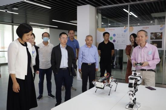 检查组领导一行在学校领导的陪同下,参观了学校应急指挥中心,通过信息化数据平台与校园监控网络,观看了学校的教学楼、学生宿舍、快递站等场所,重点关注了课堂情况与校园垃圾分类等问题。在新揭牌成立的人工智能学院,检查组一行参观了学校与阿里云共建的智能物联网实训基地,了解了学生专业培养计划与产业发展规划。