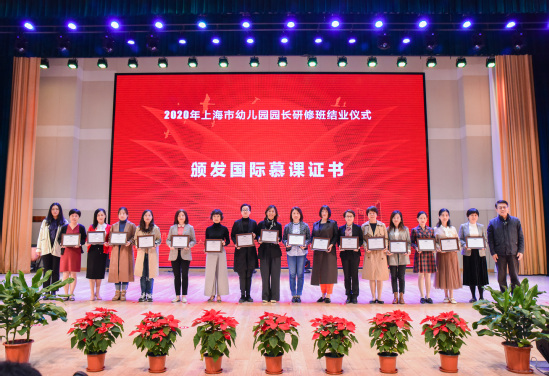 11月3日,2020年上海市幼儿园园长研修班成果交流与结业仪式暨天华•学前教育专业建设成果汇报展示在学校大礼堂成功举办。结业仪式上,来自第三、四期骨干园长研修班和第一期初任园长研修班的144名园长现场领取了研修结业证书和美国幼教协会(NAEYC)慕课课程证书,44名园长被评为优秀学员。上海市教委人事处调研员孙鸿、民办教育处副处长柏丹莅临指导。参加活动的还有来自区教育局、贯通中职校、高职校、开设学前教育专业的本科和高职兄弟院校领导及专业负责人,学校党政监领导参加仪式。