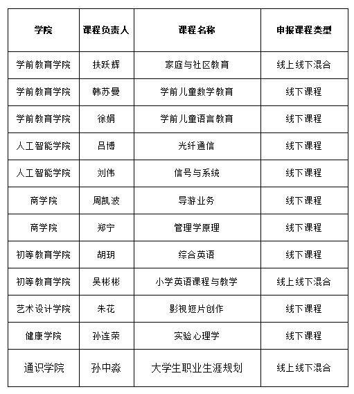 根据《上海市教育委员会关于做好2020年度一流本科课程申报工作的通知》(沪教委高〔2020〕66号)要求,科研处根据申报资格审核和各二级学院推荐,共收到申报课程17门。由校学术委员会对17门课程进行评审,最终遴选出12门课程申报上海市一流本科课程(详见下表,排序不分先后)。公示时间:11月3日至11月9日