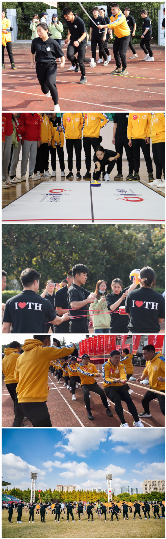 上海市高校辅导员团队素质拓展活动是落实上海市高校思想工作会议精神及高校辅导员团队文化建设的一项重要举措,通过团队拓展外塑形象、内增素质,增强辅导员的职业认同感、荣誉感和归属感。今年的比赛项目对辅导员的体力和团队协作能力提出了更高的要求,赛前,根据活动要求,学保处调动广大辅导员的积极性,精心组建了参赛团队,利用空余时间认真组织开展了多次训练活动。本次比赛共分五个项目并实行积分制排名,分别是:绳舞飞扬、陆地冰壶、一鼓作气、环环相扣和力拔山河。辅导员们齐心协力、团结协作、不断奋进,在五个项目的角逐中赛出了水平、赛出了风格,充分展现了天华辅导员团结拼搏的精神和积极向上的活力,特别是一鼓作气项目,我校辅导员用汗水诠释了团结精神,以250个击鼓数量问鼎单项第一名的好成绩,最终荣获团队拓展活动二等奖。