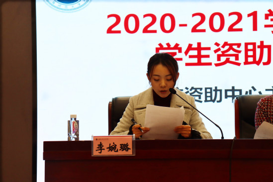 会议第二、三项议程分别由邵海波宣读2020年度国家励志奖学金获奖学生名单,杨央宣读2020-2021学年第一学期“学生资助工作先进个人”名单。