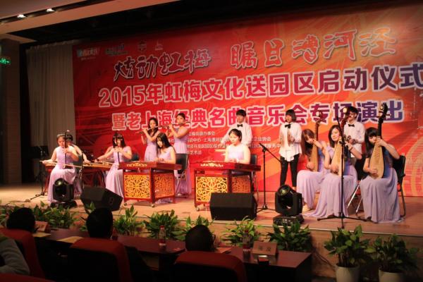 我校民乐团参加虹梅文化送园区启动仪式2015年4月9日晚,我校民乐团在周磊老师和戴沉雁老师的带领下,参加了在徐汇区漕河泾开发区艺术中心举2015-04-13