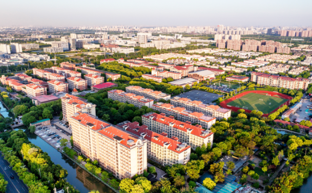 现代楼宇与葱茏绿意相映成趣,勾勒出人文与自然共生的诗意空间